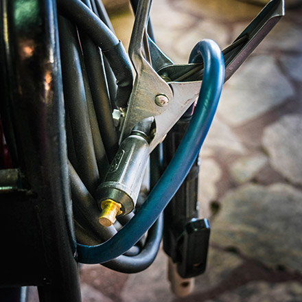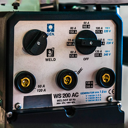 Soldador/ Alternador marca Marsiglione con tablero instrumental, ruedas y chasis con ruedas