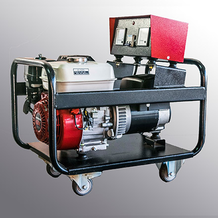 La parte motriz compuesta por un motor de 4 tiempos a combustión interna del tipo naftero de fabricación japonesa marca HONDA de 200 cm3 de 6,5 Hp con válvulas a la cabeza de bajo nivel de ruido de la línea OHV de reducido nivel de consumo de combustible y aceite, aumentando la potencia de salida e incrementando la durabilidad del motor , enfriado por aire forzado por medio de turbina eyectora comandada por el cigüeñal con una relación de compresión de 8:1 con sistema de encendido transistorizado sin platinos sistema de arranque manual por medio de cuerda retráctil con tanque de combustible de 5 Lts. Lo que nos brinda una autonomía de aproximadamente 4 Horas continuas, del tipo monocilindrico inclinado a 25 Gdos del tipo horizontal a 3000 r.p.m.
