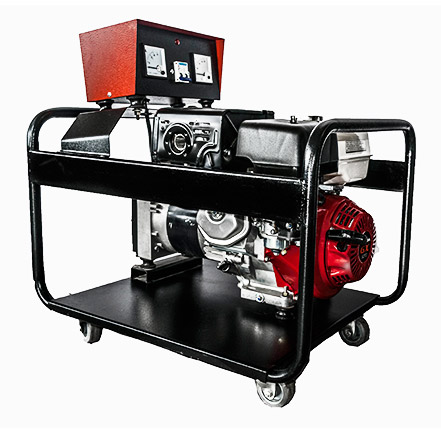 La parte motriz compuesta por un motor de 4 tiempos a combustión interna del tipo naftero de fabricación japonesa marca HONDA de 270 cm3 de 9 Hp con válvulas a la cabeza de bajo nivel de ruido de la línea OHV de reducido nivel de consumo de combustible y aceite, aumentando la potencia de salida e incrementando la durabilidad del motor, enfriado por aire forzado por medio de turbina eyectora comandada por el cigüeñal con una relación de compresión de 8:1 con sistema de encendido transistorizado sin platinos sistema de arranque manual por medio de cuerda retráctil Con tanque de combustible de 6 Lts. Lo que nos brinda una autonomía de aproximadamente 4 Horas continuas, del tipo monocilindrico inclinado a 25 Gdos del tipo horizontal a 3000 r.p.m.